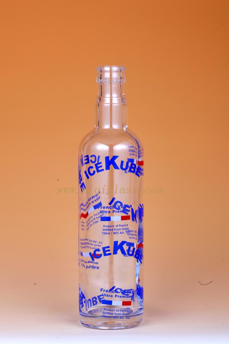 伏特加酒瓶,洋酒瓶,酒类包装瓶:1.容量:400ml 直径*高:58*258mm 瓶重:405克2.材质:水晶玻璃料3.模具:公模4.起定量:30000只5.相关配附件:盖子及礼盒6.表面装饰:烤花7.交货期:45天8.包装方法:纸箱#隔挡包装9.付款方式: 预付40%定金,余款提货时付清.